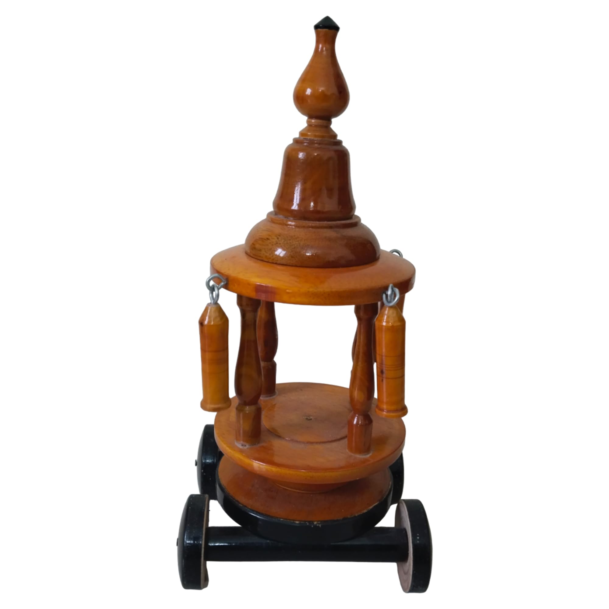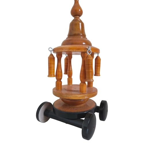 Thenkumari Handcrafted Wooden Temple Car, Miniature Chariot for Pooja Room, Traditional Home Decor with Wheels, Brown