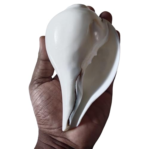 Thenkumari Original Blowing Shankh Natural White Conch Shell, Sacred Ceremonial Blowing Shankh, 10 Inch Round, 5-6 Inch Length, Large Size
